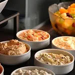 Jeden Morgen wird ein Frühstück im Restaurant serviert. Im Restaurant Okinii können die Gäste asiatische Spezialitäten genießen, während das Restaurant Cafe Sahneweiss europäische Küche anbietet.